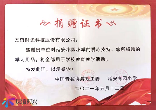 5月12日,友誼時(shí)光積極參與中國(guó)音數(shù)協(xié)遊戲工委為慶祝建黨100周年開(kāi)展的“不忘初心”系列主題活動(dòng),走進(jìn)延安,為延安棗園小學(xué)送去了數(shù)千套圖書(shū)及學(xué)習(xí)用品。