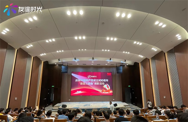 為營(yíng)造共慶百年華誕、共創(chuàng)歷史偉業(yè)的濃厚氛圍,友誼時(shí)光於6月10日起在辦公大樓時(shí)光廳陸續(xù)播映“建國(guó)三部曲”——《建黨偉業(yè)》《建軍大業(yè)》《建國(guó)大業(yè)》,借助紅色影片讓大家重溫那段崢嶸歲月,向英雄致以崇高敬意。